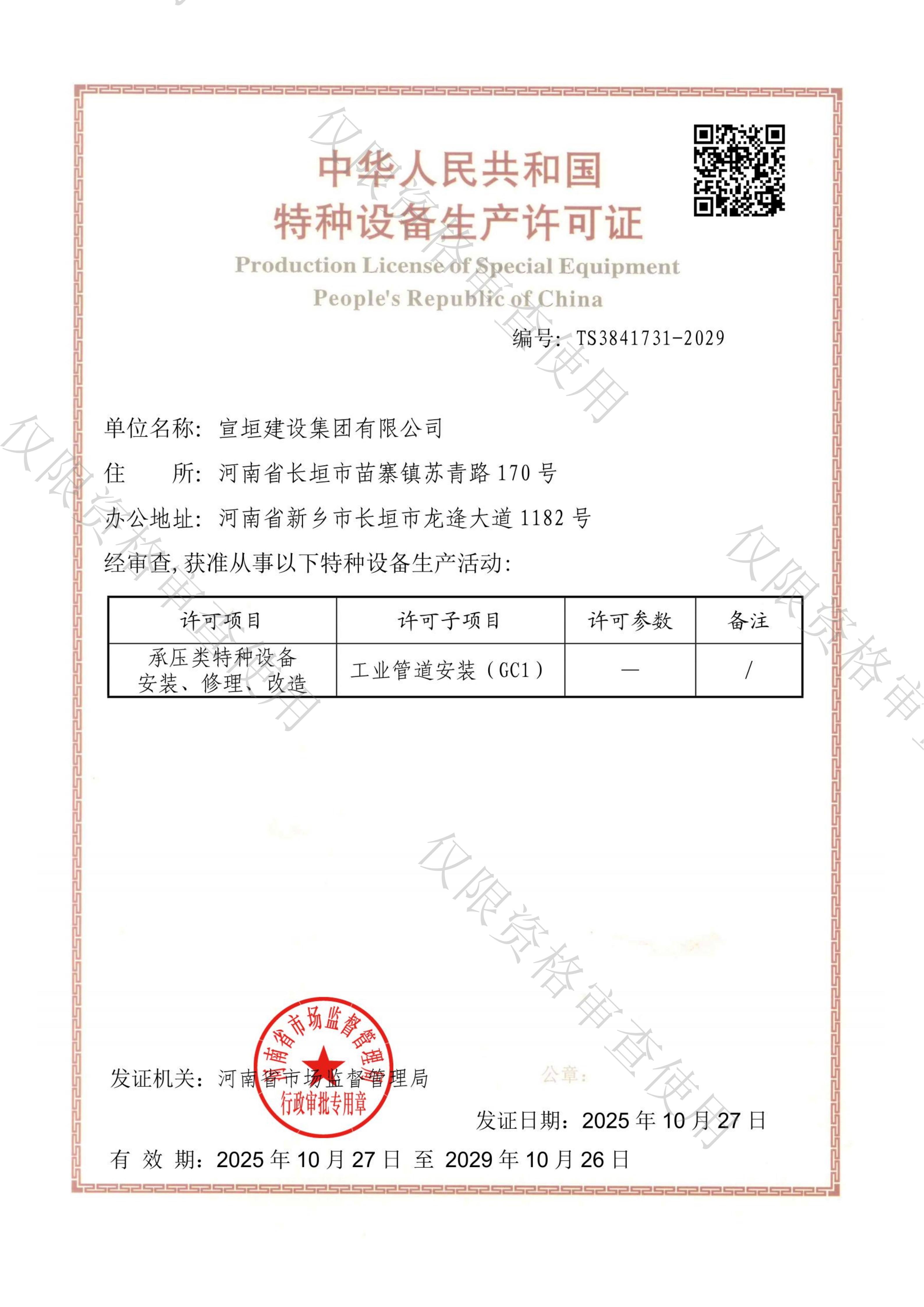宣垣集团先后资质增项的类别有建筑工程施工总承包、电力工程施工总承包、石油化工工程施工总承包、钢结构工程专业承包、消防工程专业承包、承装(修、试)电力施工许可承包 、水工金属结构防腐蚀资格承包等资质...